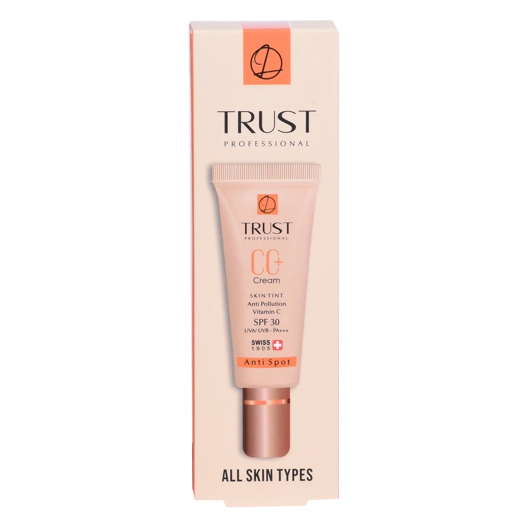 سی سی کرم پلاس تراست، به طور اختصاصی به روشن شدن پوست و برطرف کردن جای جوش و لکهای پوستی کمک میکند. این محصول بهطور همزمان با آبرسانی پوست، از ایجاد لکهای جدید در پوست جلوگیری مینماید. ترکیبات آربوتین، میتوکینیل، ویتامین سی، نیاسینامید و آزلوگلیسین به صورت همافزا، از تولید رنگدانههای ملانین جلوگیری کرده و به روشن شدن و رفع لکهای پوستی کمک میکنند. عصاره جلبک در این محصول باعث جلوگیری از ایجاد لکهای پوستی شده و همچنین وجود ترکیبات ضدالتهاب مثل عصاره گیاه اسپیرا اولماریا و بیزابولول در این محصول، التهابات ناشی از آکنه و سایر ضایعات پوستی را تسکین میدهد.