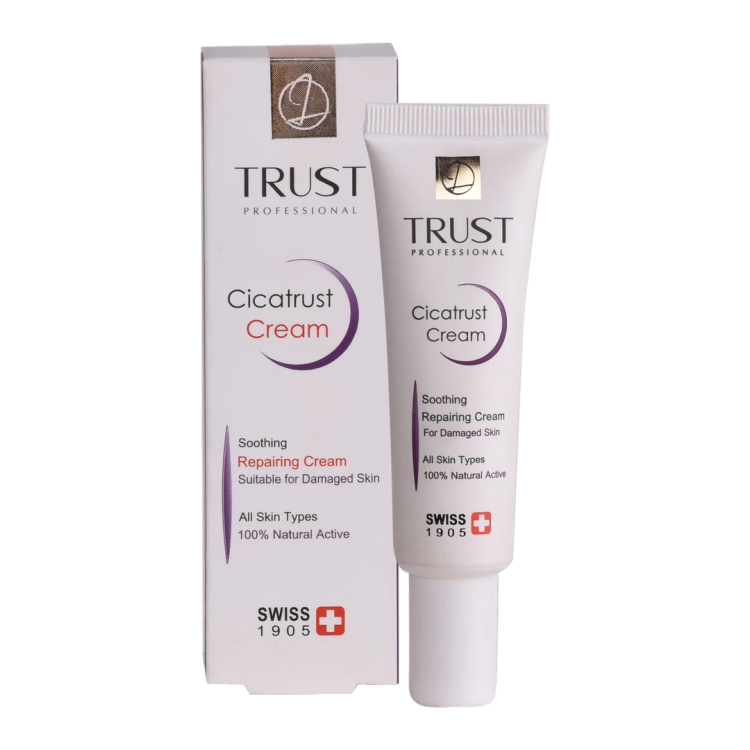 کرم ترمیم کننده تراست مناسب ترمیم پوستهای آسیبدیده و درمان انواع آسیبهای پوستی است. مواد مؤثره موجود در این کرم باعث تحریک به تکثیر سلولهای پوستی و ترمیم آسیبهای واردشده به پوست میشوند؛ این کار را نیز با افزایش انقباض عضلات اطراف ناحیه آسیبدیده، کمک به جمع شدن زخمها و بهبود سریعترشان انجام میدهند. وجود ترکیبات فعال گیاه براسیکای این محصول، از رشد باکتریها و قارچها جلوگیری کرده و از طریق اولیگوگالاکتومانان جلوی التهاب، قرمزی، خارش و سوزش پوست در ناحیه آسیبدیده را میگیرد. همچنین مصرف این کرم با داشتن ترکیبات فعال سرامیدی به آبرسانی پوست هم کمک میکند.