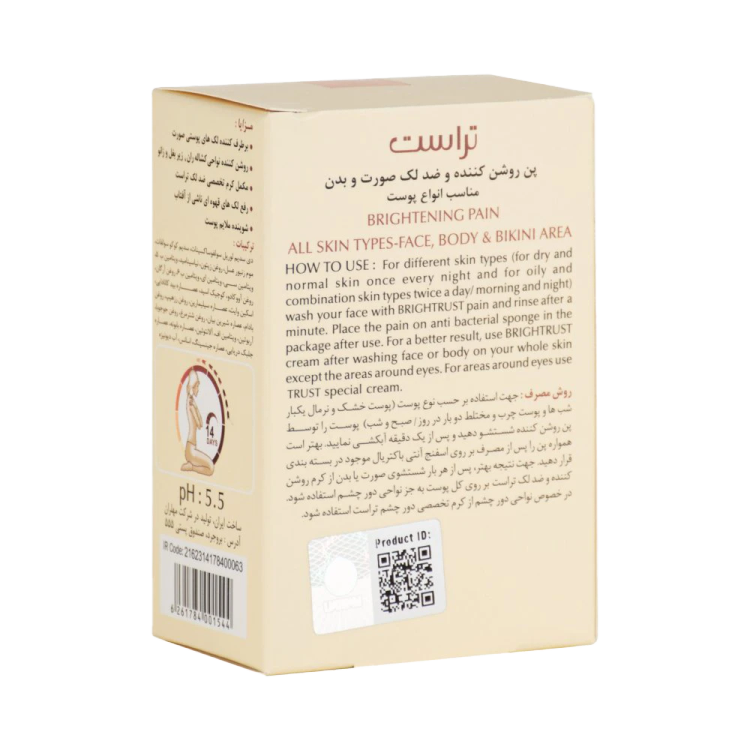 پن روشن کننده و ضد لک تراست با خاصیت روشن کنندگی پوست، ضمن حفظ رطوبت مناسب و کنترل چربی پوست شما، با از بین بردن لکها و تیرگیهای پوست به شفافیت، زیبایی و سلامت پوستتان کمک میکند.
