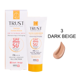 کرمهای ضدآفتاب رنگی تراست با SPF50+ از مرغوبترین و جدیدترین مواد اولیه موثره دارای حداکثر حفاظت دربرابر پرتوهای مضر خورشید ساخته شدهاند؛ این کرم با وجود بهرهمندی از بافتی سبک، دربرابر آسیبهای وارده توسط نور خورشید به خوبی از پوست محافظت و با مهار رادیکالهای آزاد از تخریب سلولهای پوستی جلوگیری میکند. همچنین با مصرف این محصول، بدون بسته شدن منافذ پوستی و ایجاد خلل در تنفس سلولهای پوستی، پوستتان آبرسانی میشود.
