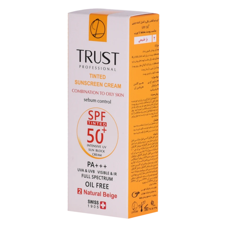 کرمهای ضدآفتاب رنگی تراست با SPF50+ از مرغوبترین و جدیدترین مواد اولیه موثره دارای حداکثر حفاظت دربرابر پرتوهای مضر خورشید ساخته شدهاند؛ این کرم با وجود بهرهمندی از بافتی سبک، دربرابر آسیبهای وارده توسط نور خورشید به خوبی از پوست محافظت و با مهار رادیکالهای آزاد از تخریب سلولهای پوستی جلوگیری میکند. همچنین با مصرف این محصول، بدون بسته شدن منافذ پوستی و ایجاد خلل در تنفس سلولهای پوستی، ضمن کنترل چربی، پوستتان آبرسانی میشود.