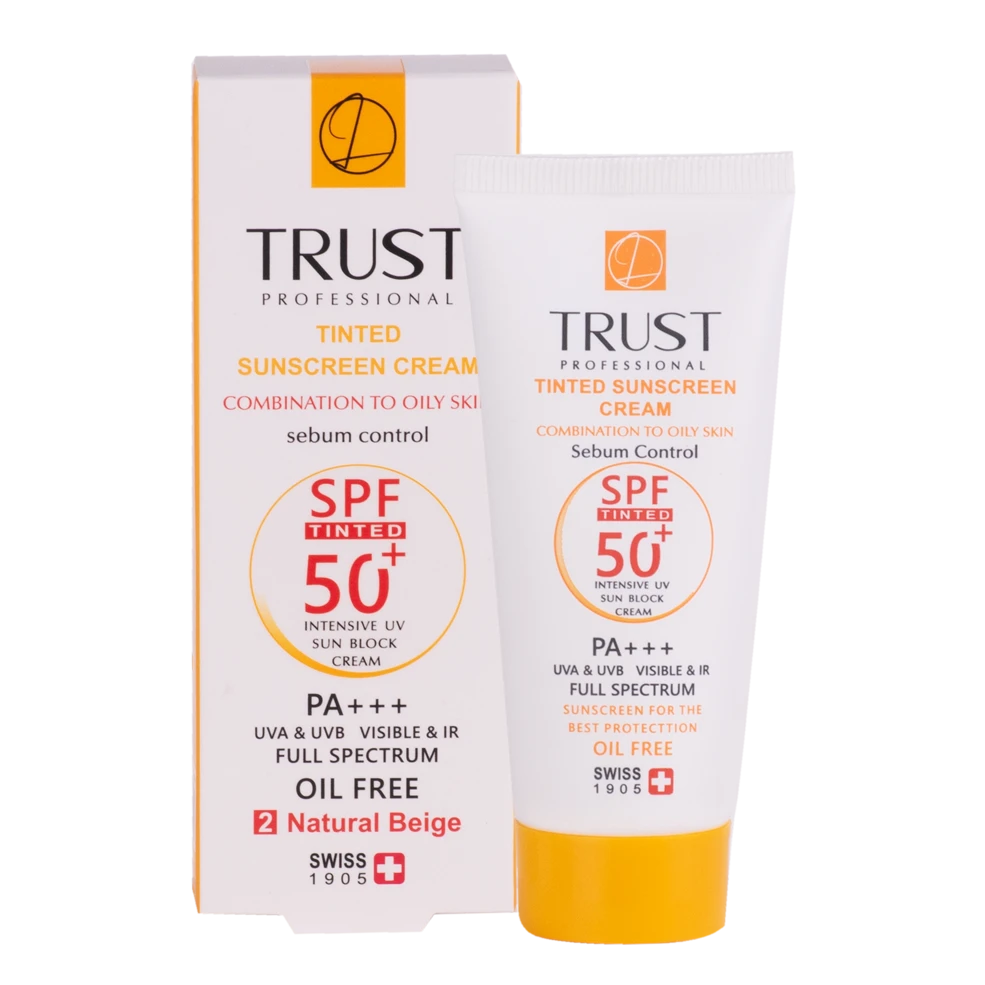 کرمهای ضدآفتاب رنگی تراست با SPF50+ از مرغوبترین و جدیدترین مواد اولیه موثره دارای حداکثر حفاظت دربرابر پرتوهای مضر خورشید ساخته شدهاند؛ این کرم با وجود بهرهمندی از بافتی سبک، دربرابر آسیبهای وارده توسط نور خورشید به خوبی از پوست محافظت و با مهار رادیکالهای آزاد از تخریب سلولهای پوستی جلوگیری میکند. همچنین با مصرف این محصول، بدون بسته شدن منافذ پوستی و ایجاد خلل در تنفس سلولهای پوستی، ضمن کنترل چربی، پوستتان آبرسانی میشود.